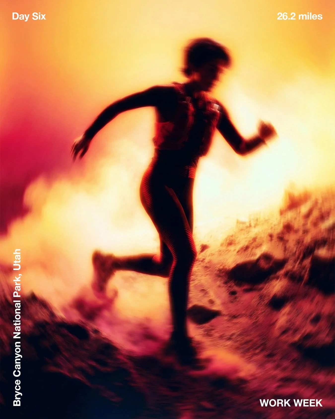 WORK WEEK is set in the breathtaking yet brutal backcountry and National Parks of the Great American Southwest. Unforgiving mountains, epic canyons, iconic rivers, and vast deserts lie before athletes as they battle seven days of hard graft. All in the spirit of making personal and global change.