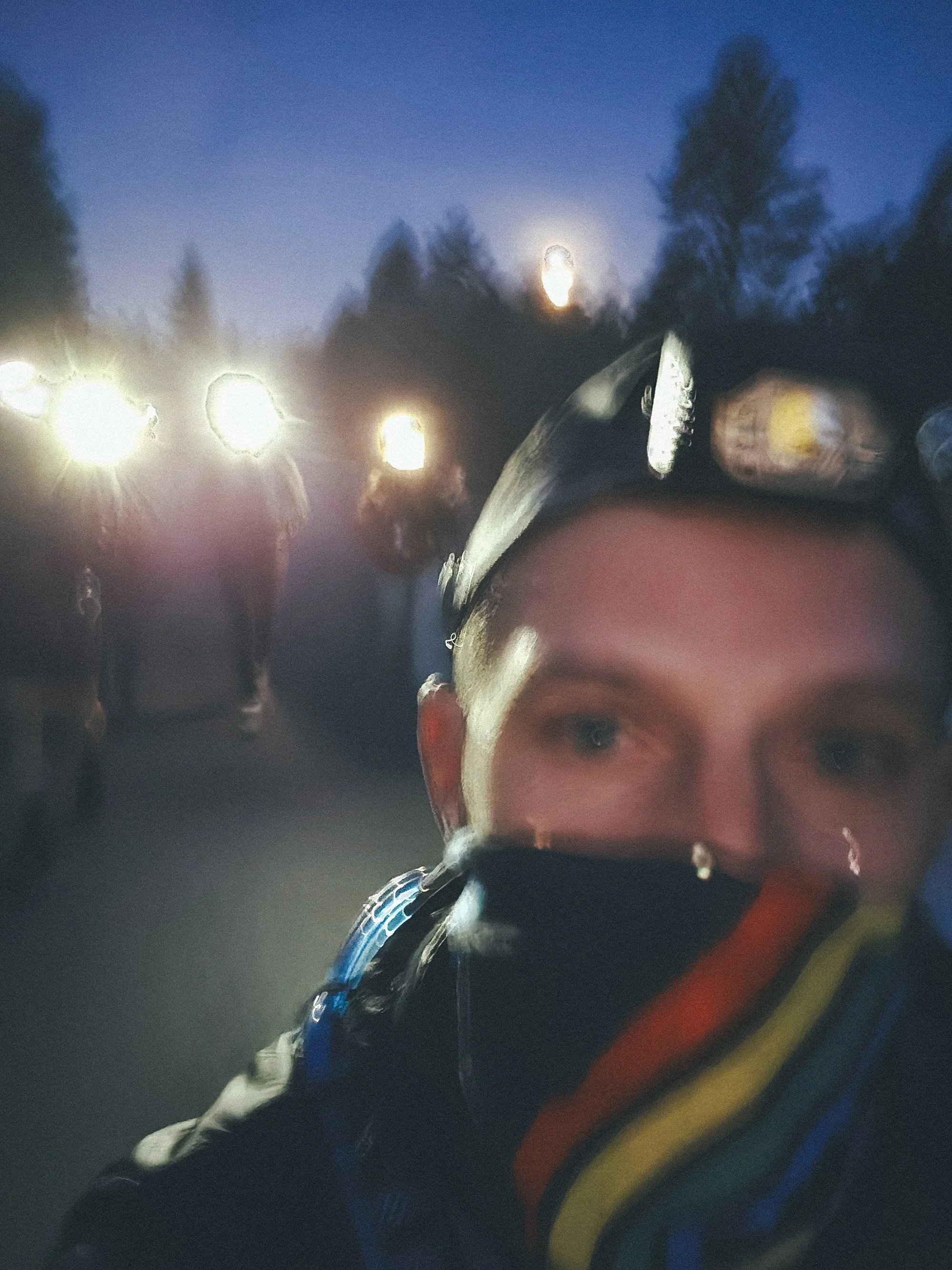 The mental fatigue began to set in. Every mile dragged more than the last. Our backs were burnt, arms numb, hands calloused. The sun dipped, and the sky flared orange as we realized we weren’t making it back before dark. We flicked our headlamps on as our spirits flickered up and down. We pushed on under a full moon, alone on the lake again. From golden sunrise to silver moonlight.